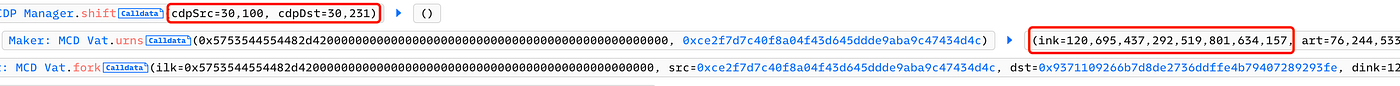 Specifically, it transferred 120695 wstETHs from Vault 30100 to Vault 30231